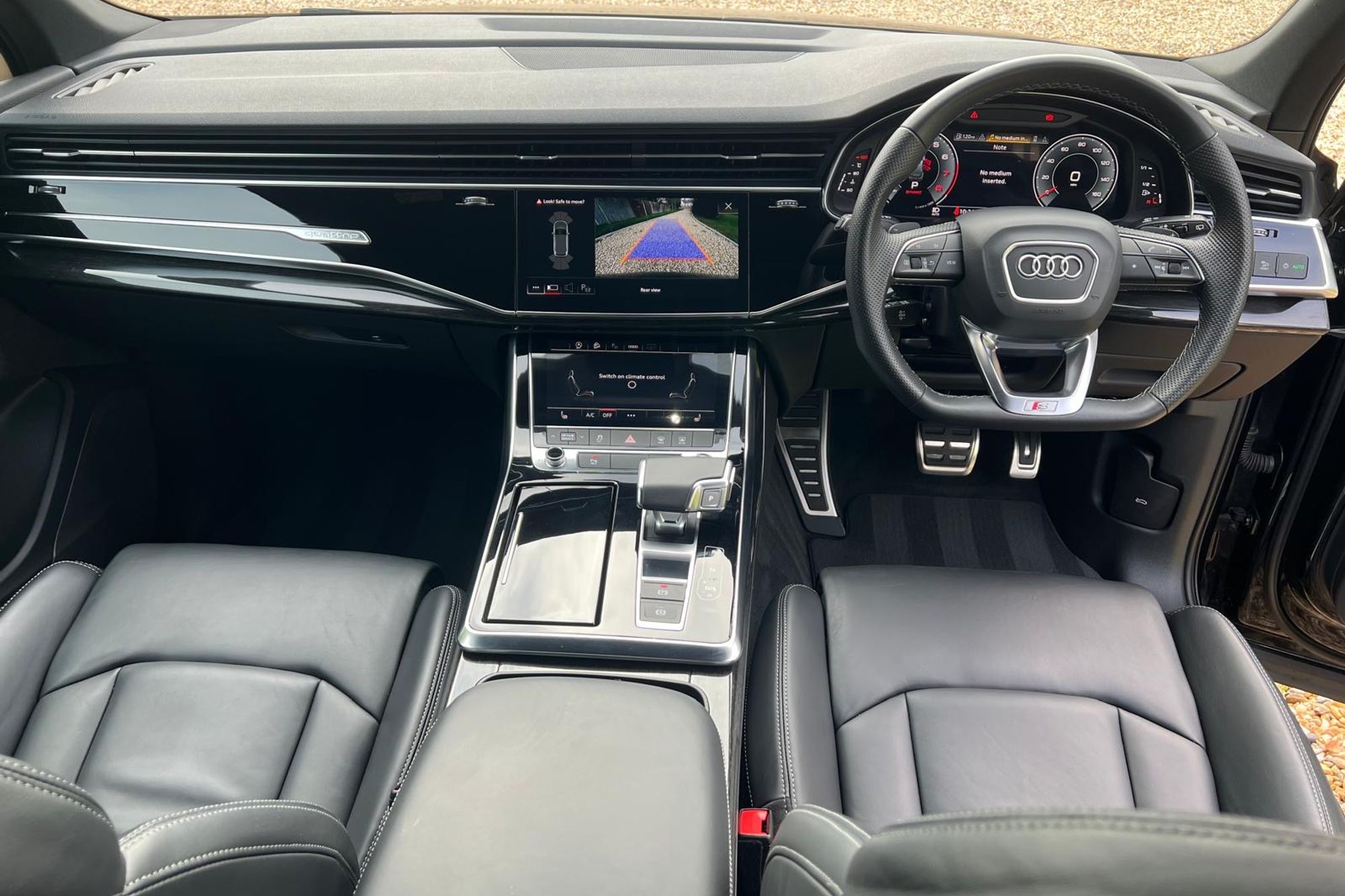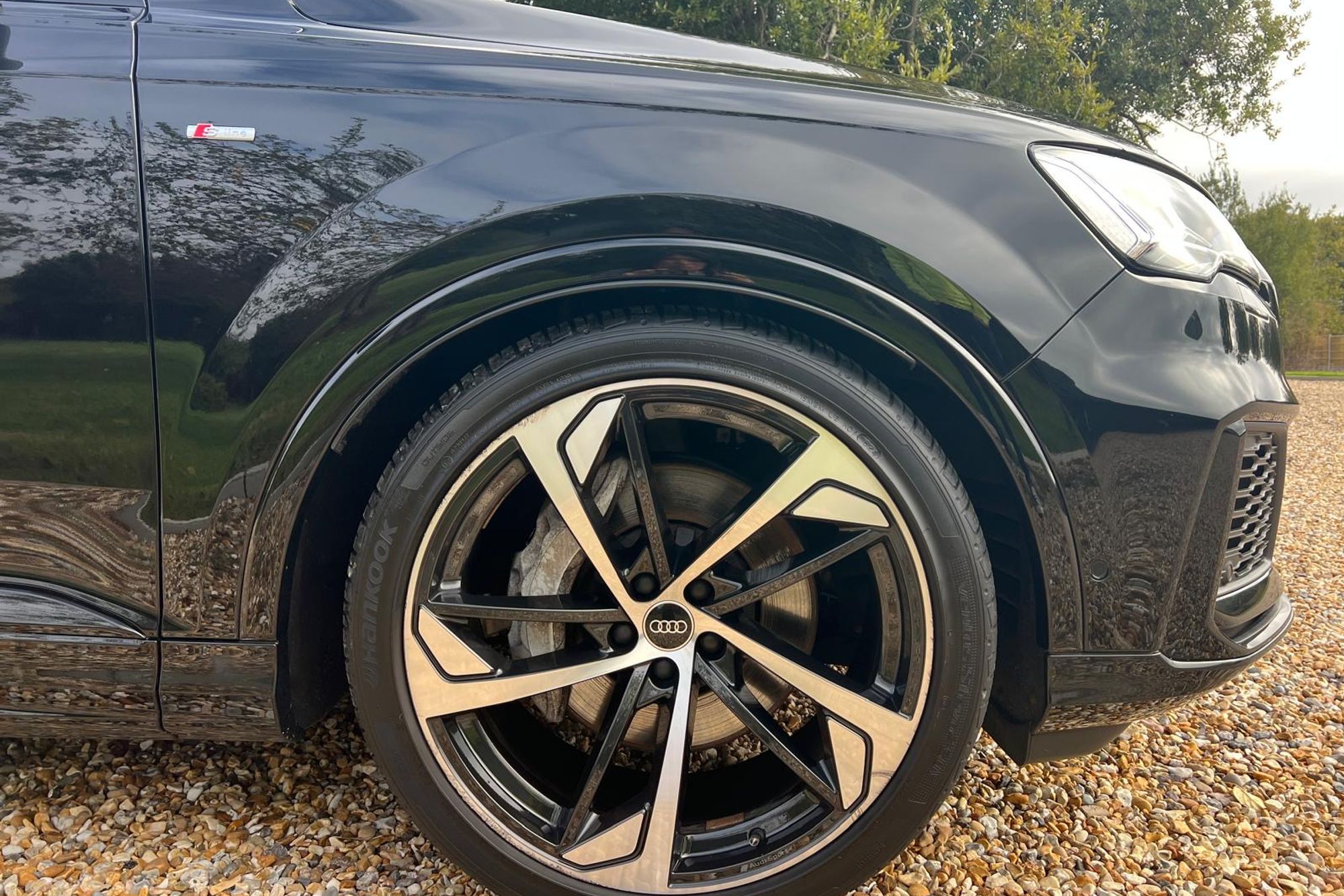The Black Edition enhances the S Line aesthetics with blacked-out trim, gloss black Audi rings, black roof rails, black exhausts and 21-inch Audi Sport wheels. The body is complemented with LED Matrix lighting, privacy glass, and heated auto-dimming mirrors.